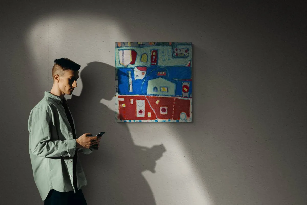 GOLD RED GREY GREEN WHITE BLUE Abstract LINES LIFE Modern Fine art Canvas A provocative act. A look on the male sex. The ecstasy.... Look, see and feel another type of approach on the differences between sexes. Combination between different materials and pictorial registers. This work is framed. You will receive it "ready to hang", with a hook on the back. Please feel free to email if interested. I am happy to send more images. This painting includes a certificate of Authenticity © 2019 José FONTE All Rights Reserved