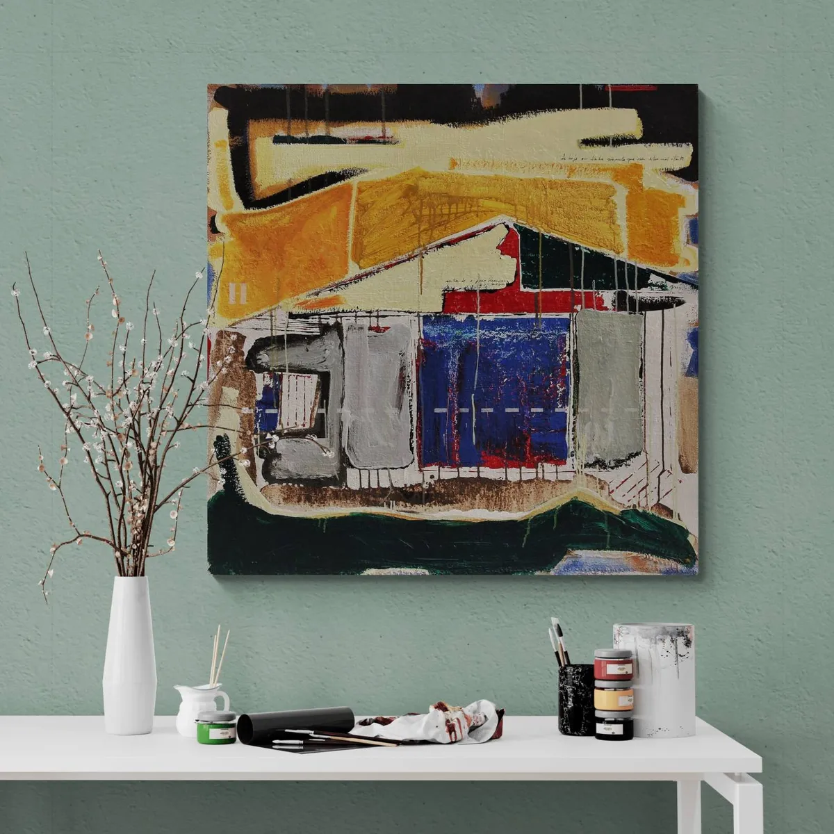 Painting: Oil, Acrylic on Canvas. Exploration of the model, module or pattern in several contexts. Read different texts. Provoke the observer and cause many feelings in certain contexts. The most grotesque expressionism compared to the accuracy of the lines defined as letters and some numbers alluding to mathematics. The painting in this type of classic support plays between the accuracy and the expressiveness. The edges are painting no need frame. 100 X 100 X 5 cm This work is framed You will receive it "ready to hang", with a hook on the back. Canvas This high quality oil and acrylic painting. Please feel free to email if interested. I am happy to send more images. This painting includes a certificate of Authenticity © 2019 José FONTE All Rights Reserved